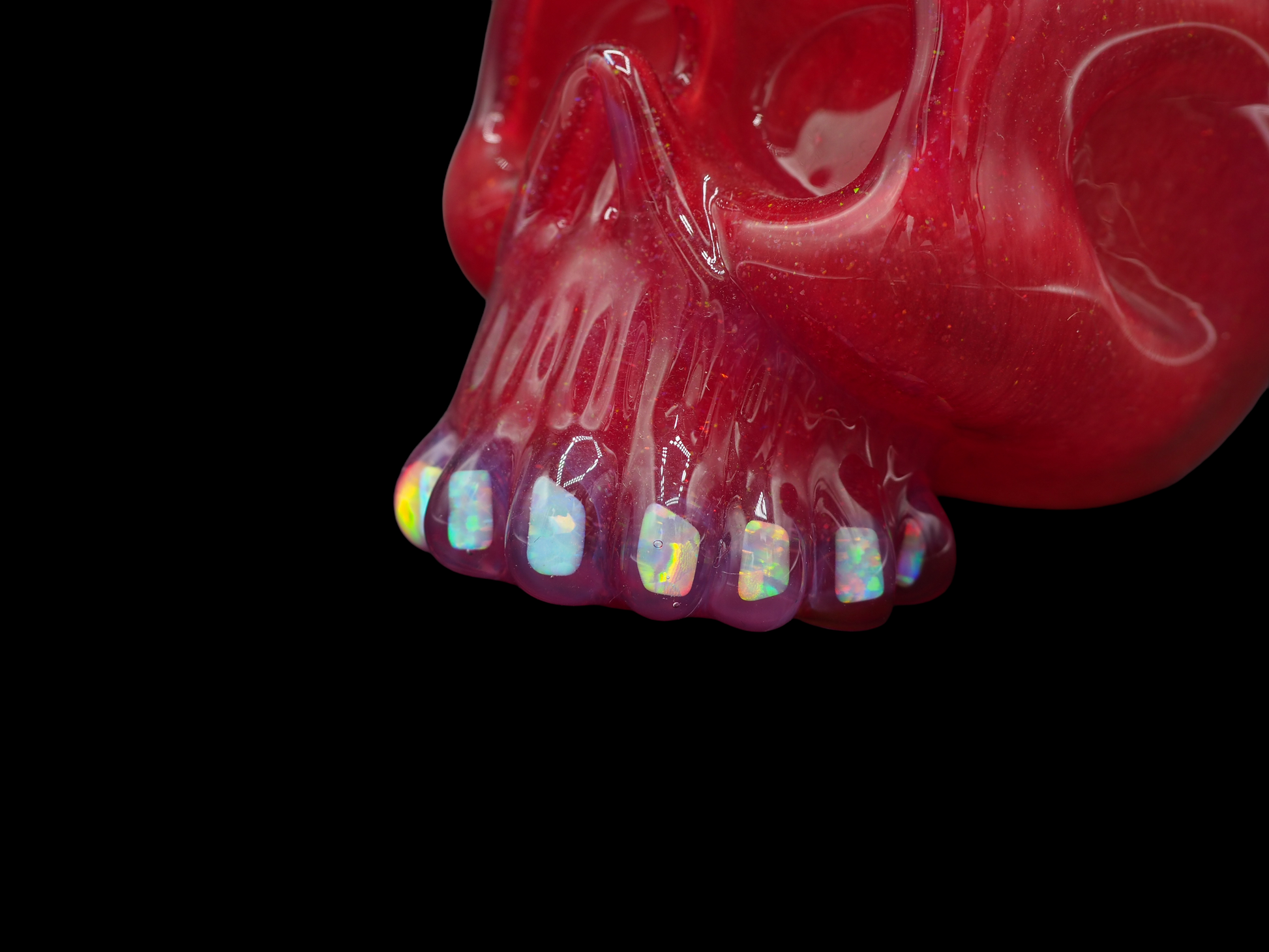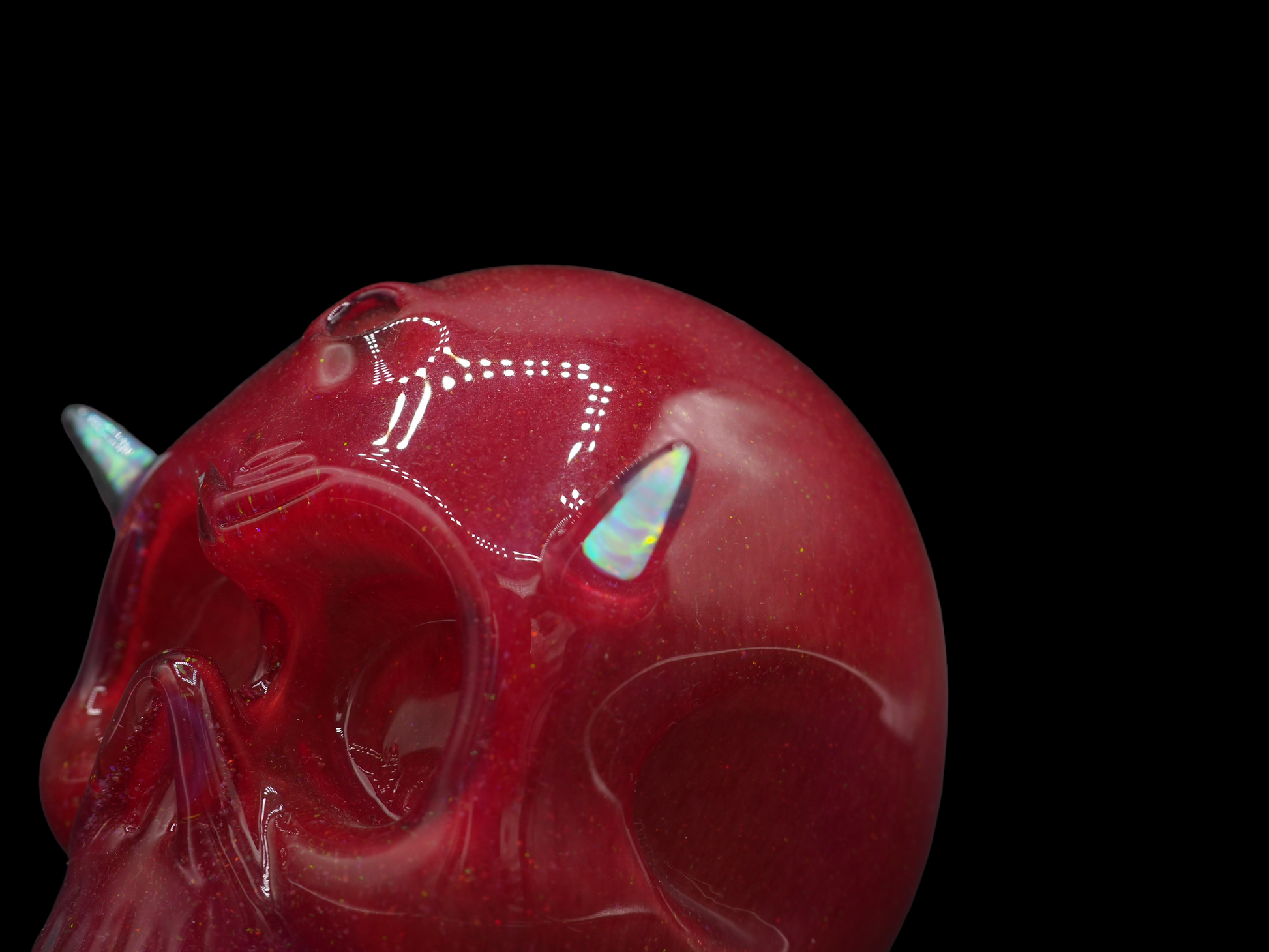 Carsten Devil Skull - Red Crushed Opal + Opal Horns