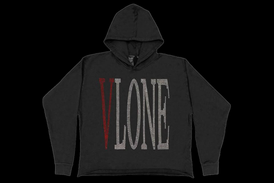Vlone Black Staple Red Rhinestone Hoodie (Medium)